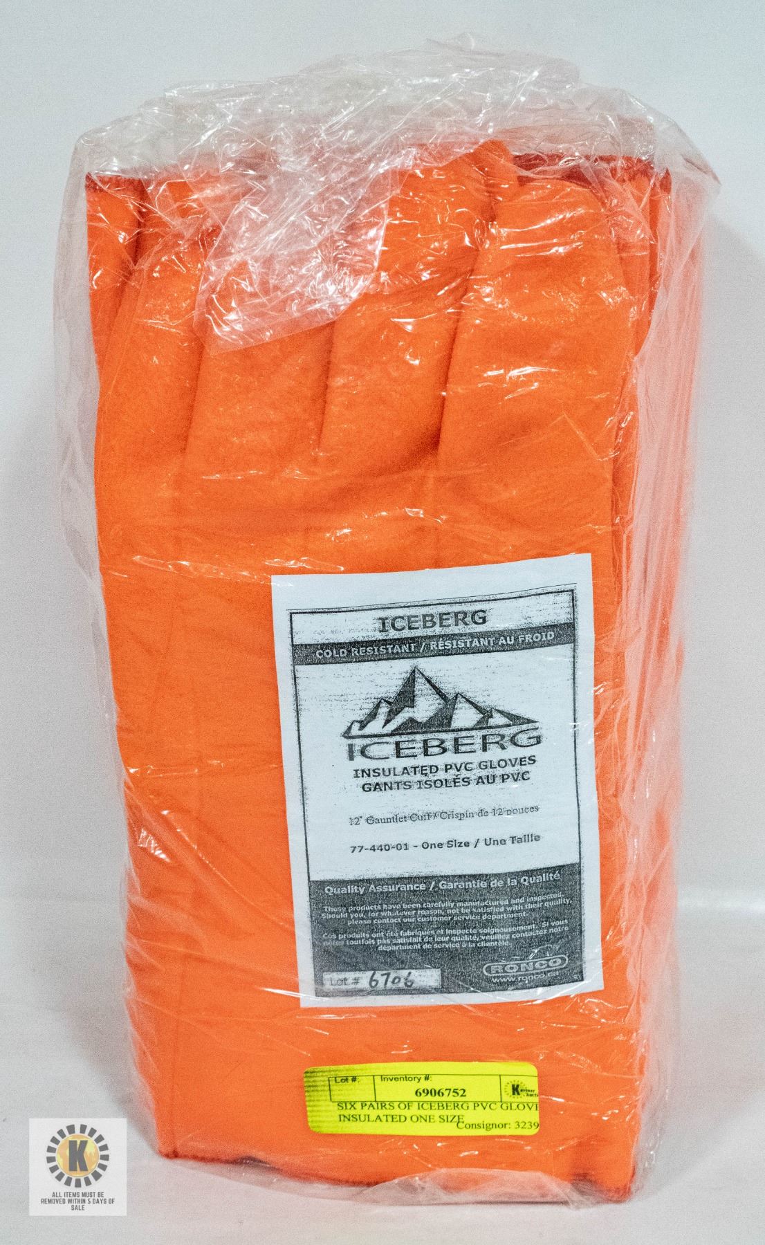 SIX PAIRS OF ICEBERG PVC GLOVES INSULATED ONE SIZE
