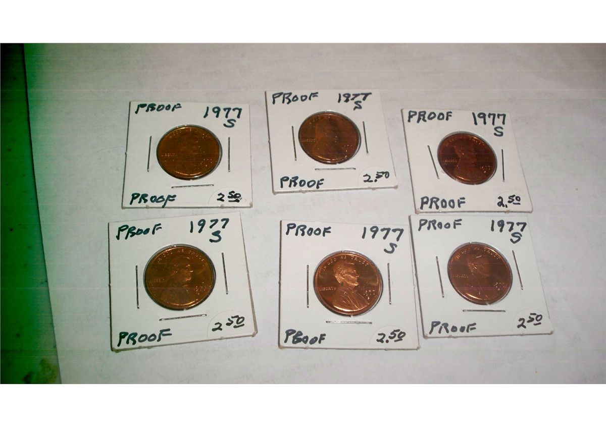 SIX PROOF 1977-S LINCOLN CENTS