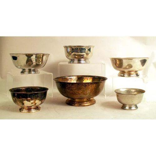 SIX REVERE-FORM SILVER PLATED TROPHY BOWLS<BR><BR>From 4"dia. to 9"dia.