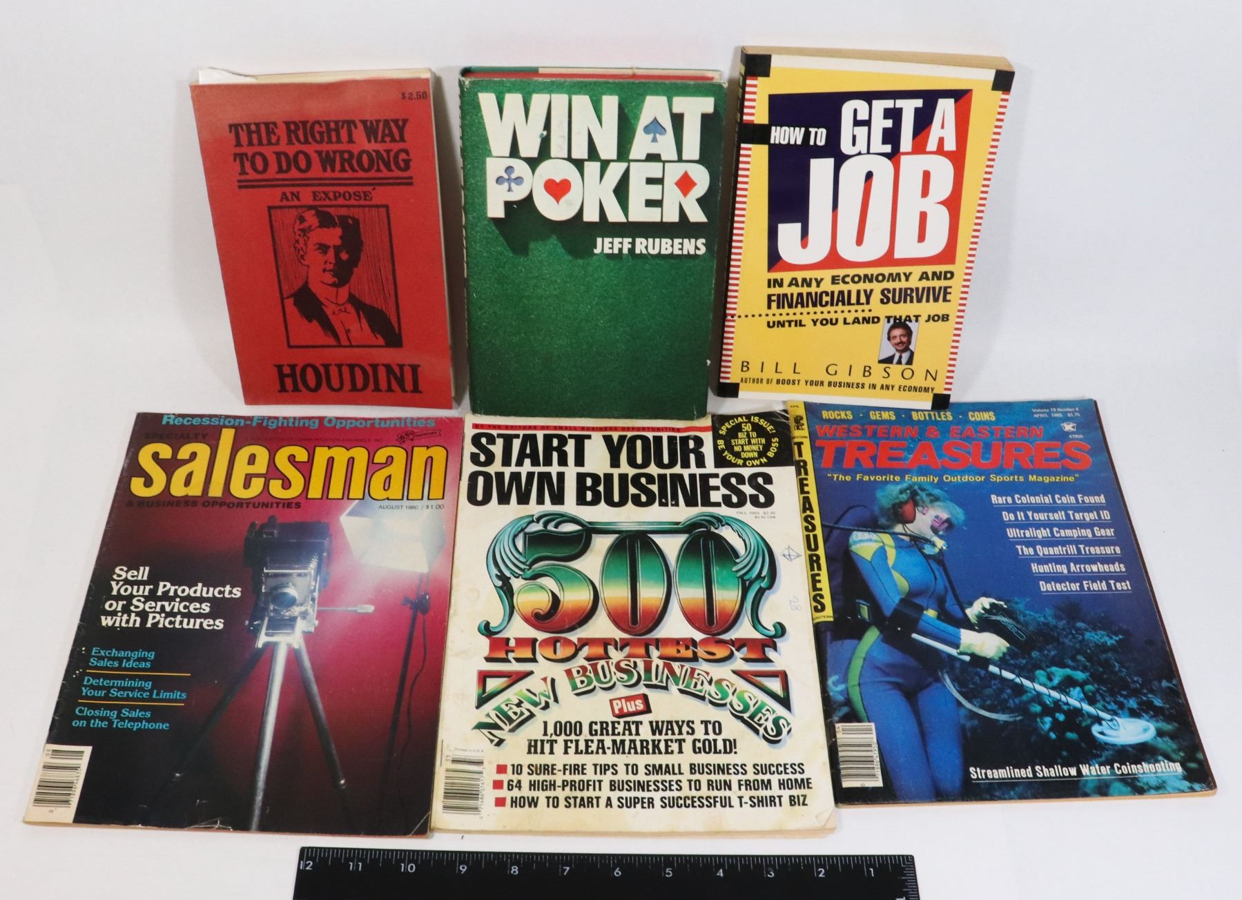 THE RIGHT WAY TO DO WRONG BY HARRY HOUDINI, WIN AT POKER HARD COVER, HOW TO GET A JOB, START YOUR OWN BUSINESS MAGAZINE, SALESMAN MAGAZINE, WESTERN AND EASTERN TREASURES MAGAZINE