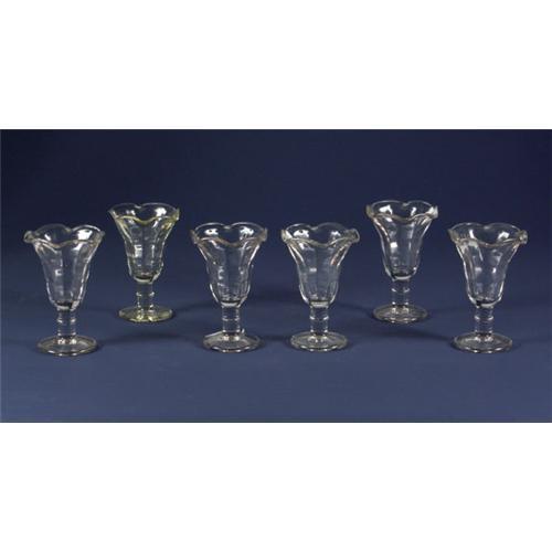 Six vintage clear glass tulip ice cream sundae dishes, 6'' ea.