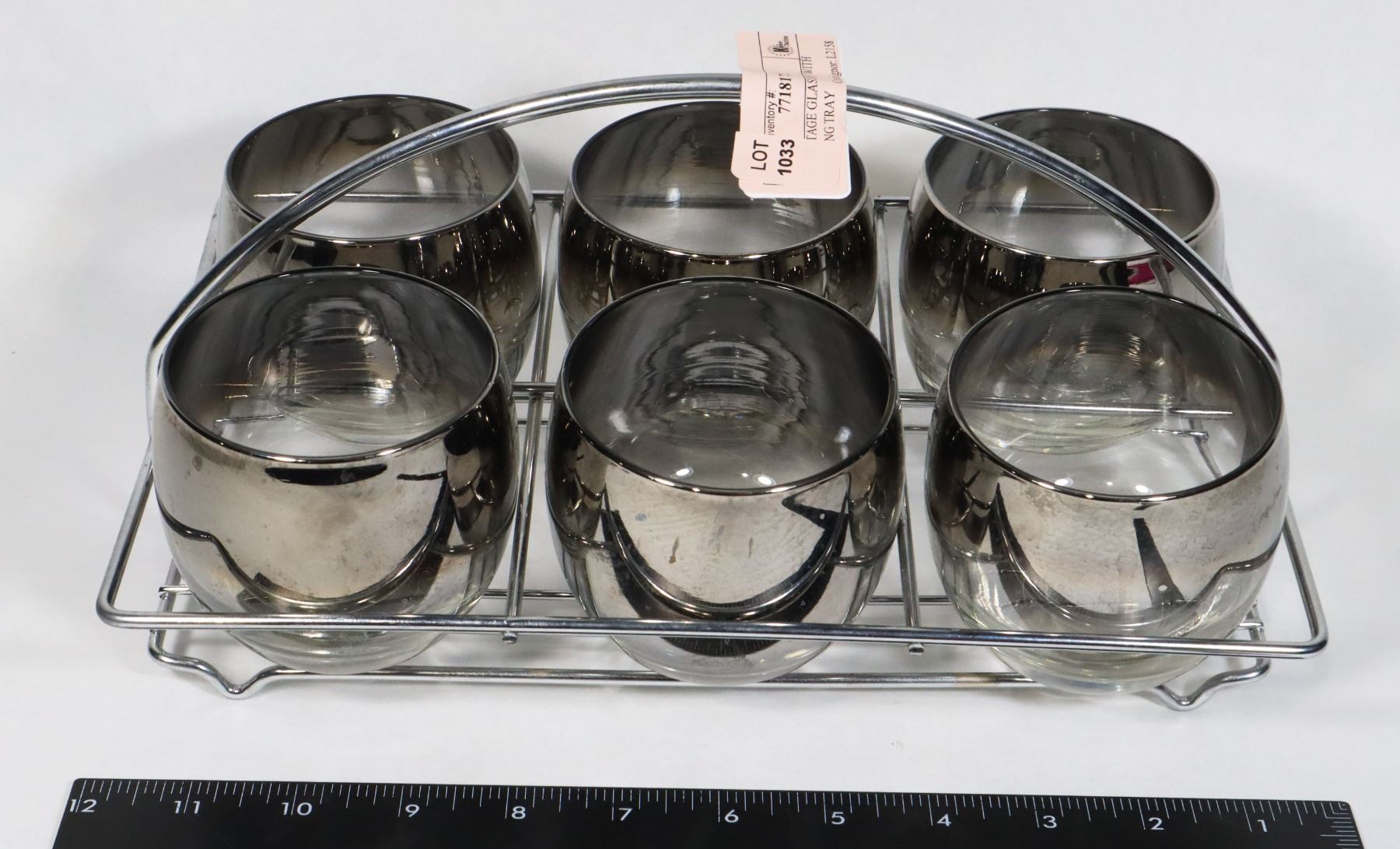 SIX VINTAGE GLASSES WITH CARRYING TRAY