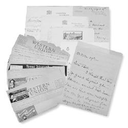 <b>332. WALLIS SIMPSON</b> (1896 - 1986)<b> </b>American divorcee whose romantic liaison with King Edward VIII resulted in his abdication of the throne "for the woman I love". A superb grouping of six lengthy fine content A.L.S. and one T.L.S. "<i>Wallis</i>" mostly from Nassau, Bahamas ca. 1939-1941, where she lived with the banished Edward following his abdication of the throne. All are written to Jack Warner and his wife, friends of the Windsors who supplied the exiled royals with gifts and comestibles not available in the Bahamas. In very small part: ".<i>..This is a very difficult place to write from. We feel rather stupid writing to people who are living in the world. We have only the propaganda from the radio to reply upon and these days it really borders on the ridiculous...What tools of politicians we are all, and how grateful I have no children to be tossed about by them...What a race of servants [the British] -- they should be made to fight all wars with the politicians or their officers...Hope to get to Canada by hook or crook but have no definite plans...Do not forget to see if you can get more of that heavenly smoked trout...We suffer from shortages of things due to boat service. Soon it will be a real war...and a good thing it will be those who seem blind to the fact of war....The heat has been worse and I despair of having left here another summer, but England since the war is determined that the Duke shall never have a decent job, so what can we do but grin and bear it...The Hungarian delights arrived and also the book...not up to Berlin Diary [William Shirer's diary of his stay in Berlin in the 1930s]...Rose Wood says it is the truest picture of the Gestapo and she ought to know. We were most gratified for the clippings regarding the Duke of Kent, and I for all the political ones...Everything in the world seems utterly confused and now [Wendell] Wilkie threatens us with losing the peace...I think the Peace the most important item to win, I can't bear an idea that we might lose that...I read at least 4 books a week and every magazine. We are alone a great deal...Many thanks for the filets...I have been awfully busy with the Canteen as I am really running it...I am there day and night. I find it more interesting work than the Red Cross because it is more personal...To-morrow we leave for Paris, which we are not looking forward to as it is to be a round of visits to the dentist and people from England probably bringing bad news as that country can hand out to its ex-King!...Everything has arrived...The car...is a great success and the Duke uses it entirely for going back and forth to his golf...It has been very gay in Nassau...I have been reading the Kiplinger letters from Washington...but they don't present a very pleasant future for all of you in America. I am afraid you will be curtailed of things just as we were in England and France...I am buying up everything made of aluminum, silk and all the canned vegetables, etc. I can find...I am glad America has gone so far, but you know how I feel about war...</i>". Overall very good condition.<b> $1,000-1,500</b>
