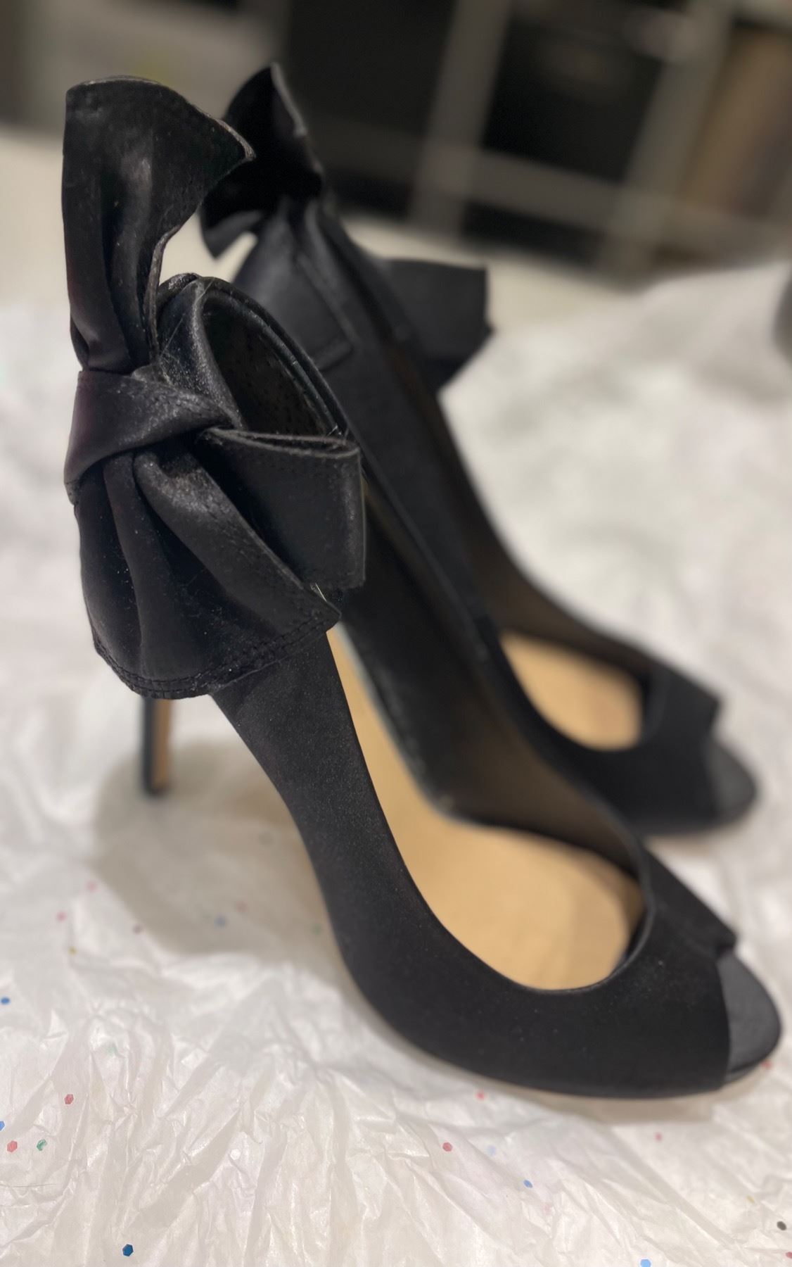 SIZE 6 1/2 DESIGNER MISCHKA BADGLEY BOW HEELS