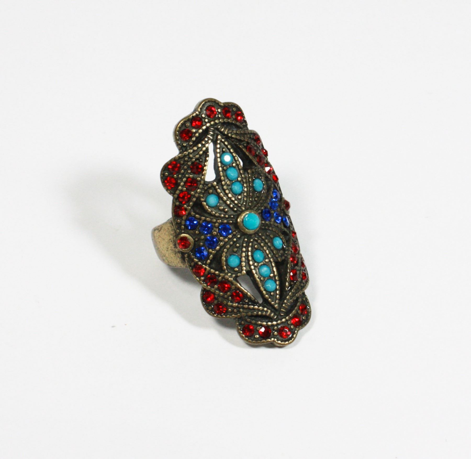 SIZE 6.75 SIZE RHINESTONE ANTIQUE DESIGN RING
