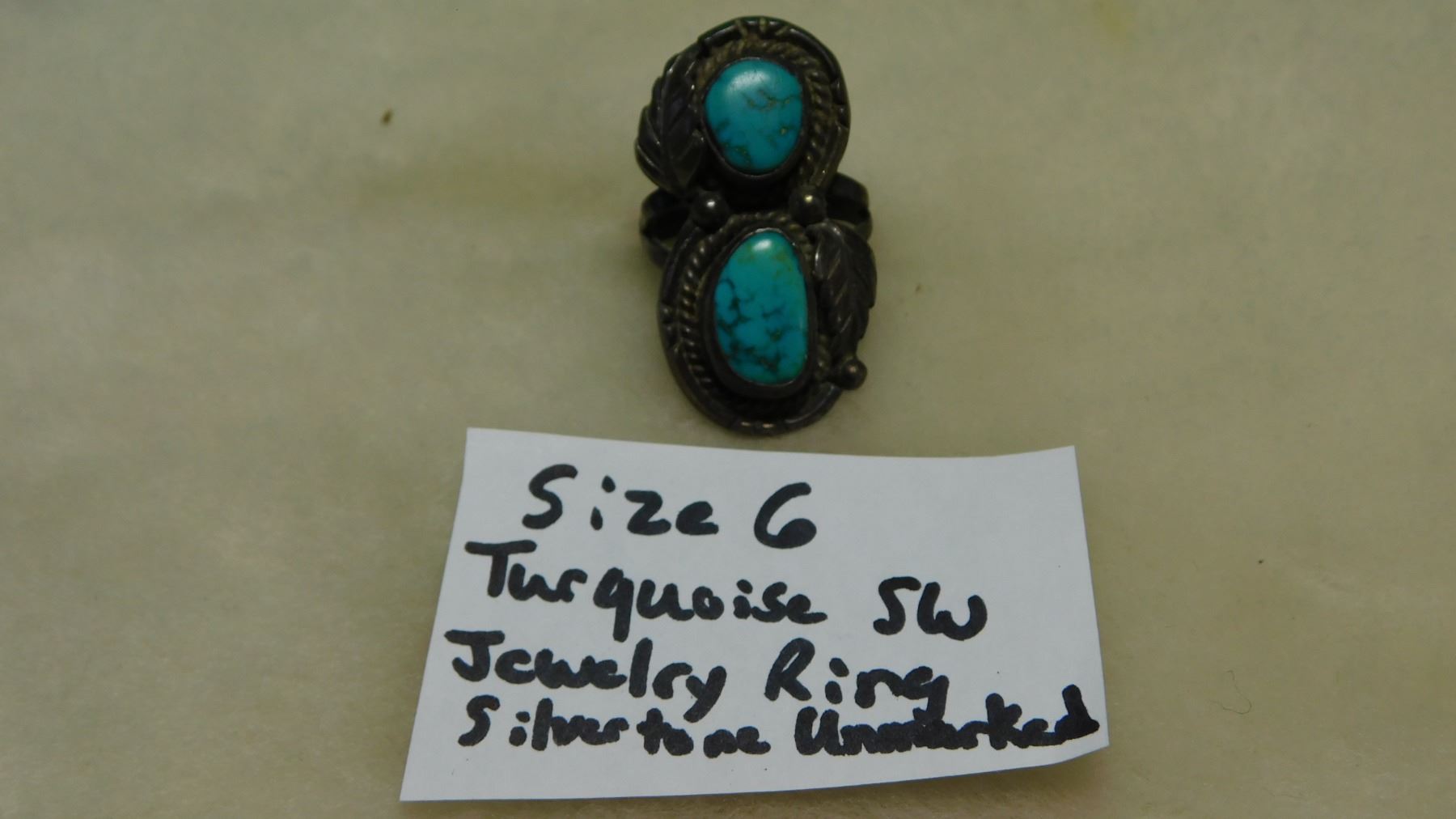 SIZE 6, TURQUOISE, UNMARKED SILVERTONE, SOUTHWEST RING