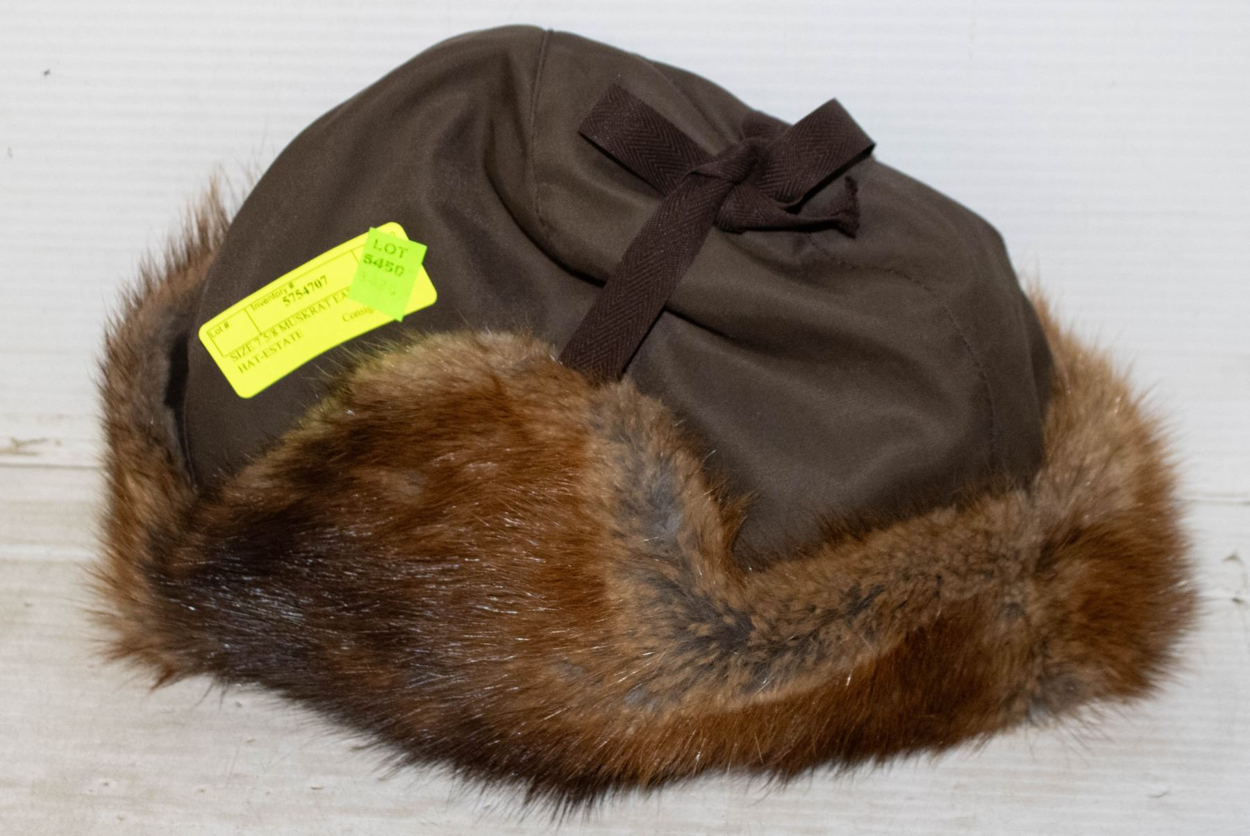 SIZE 7 5/8 MUSKRAT EAR FLAP HAT-ESTATE