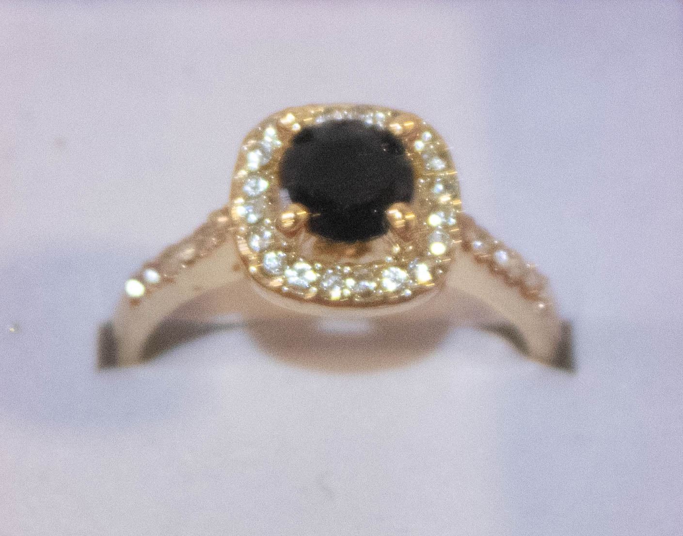 SIZE 7.5 BLACK CZ ON GOLDTONE HALO RING