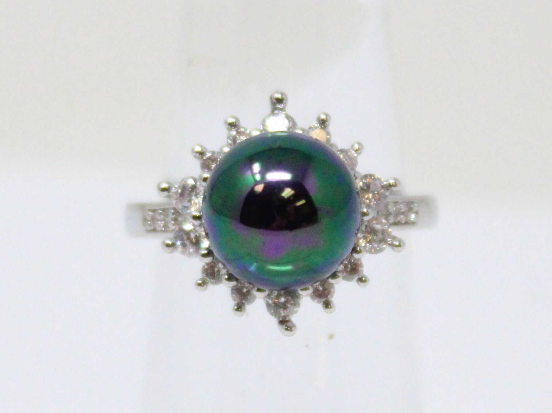 SIZE 7, .925 STAMPED SILVER CZ DIAMOND PEARL RING