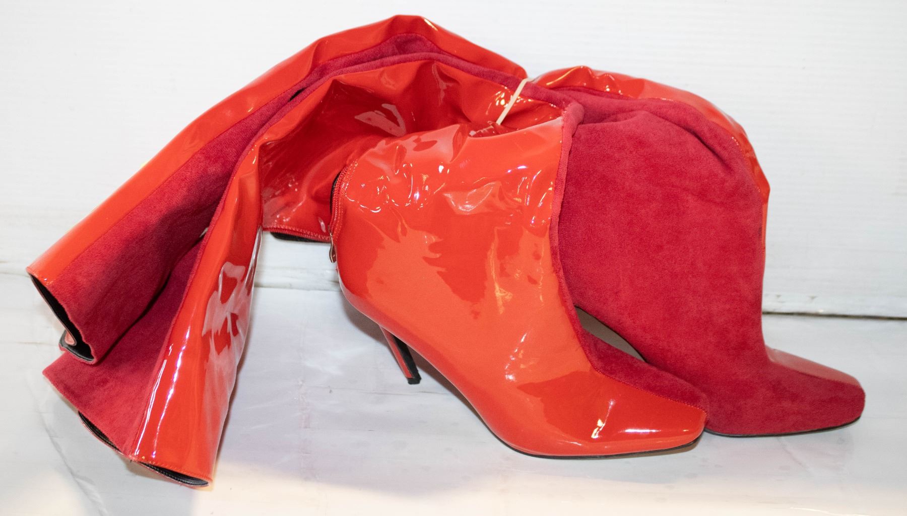 SIZE 7 KNEE HIGH RED PATTEN BOOTS-ESTATE