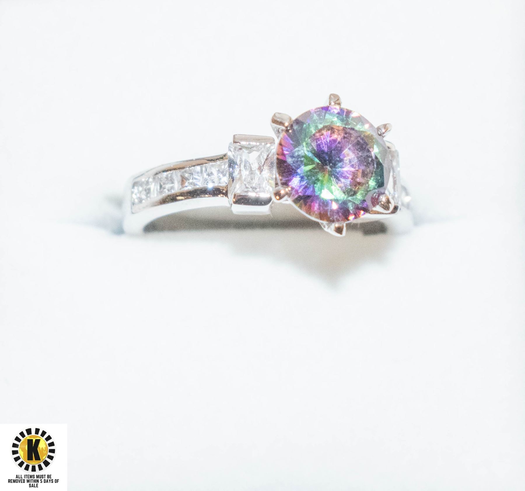 SIZE 7 SILVER TONE RING W/UNKNOWN STONES