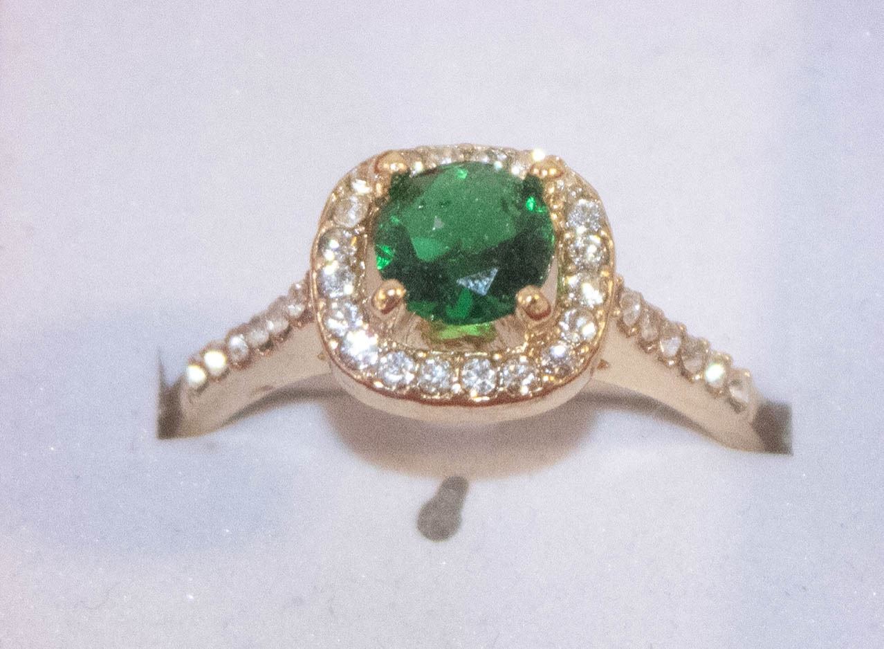 SIZE 8.5 GREEN CZ ON GOLDTONE HALO RING