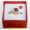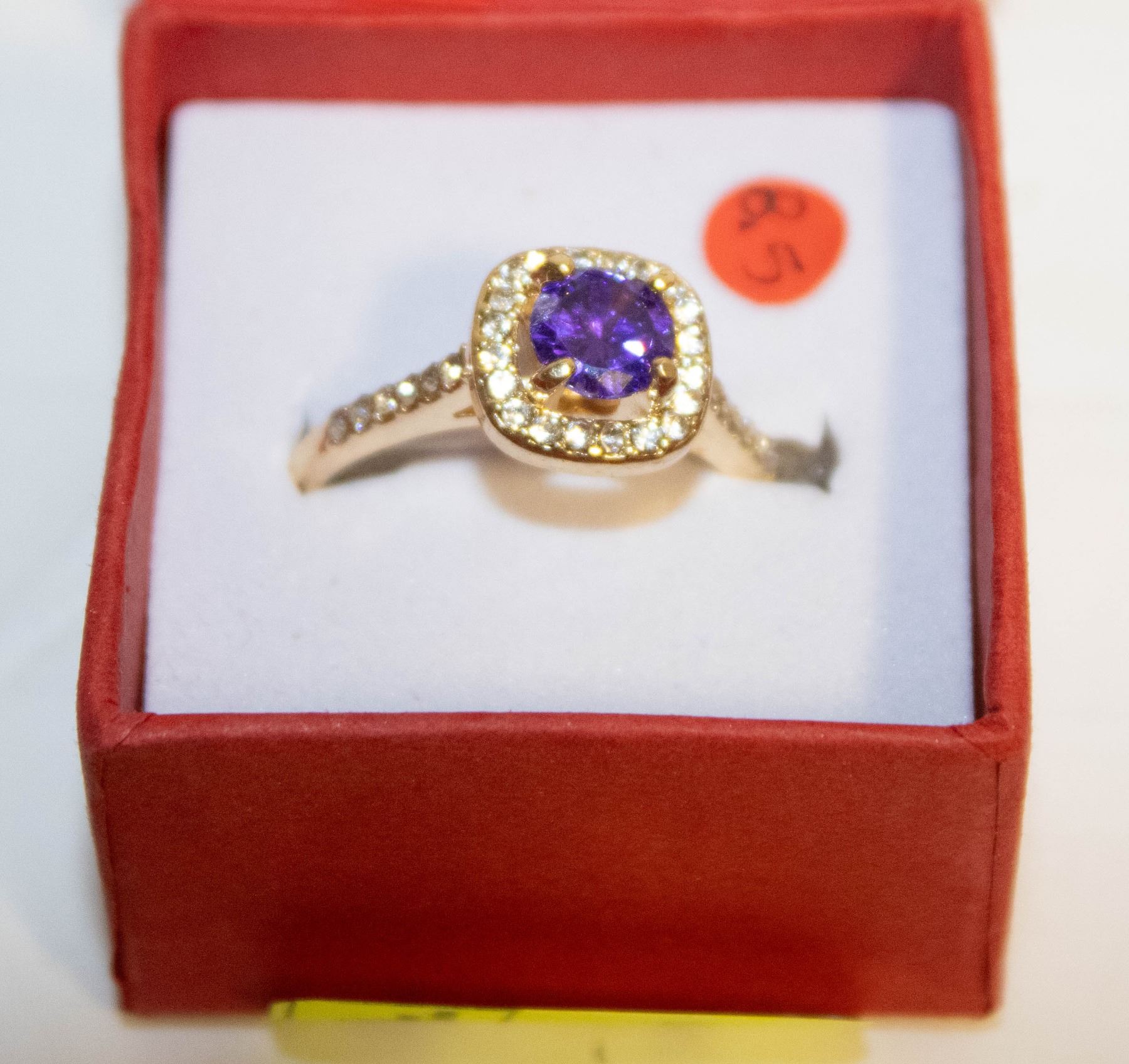 SIZE 8.5 PURPLE CRYSTAL ON GOLDTONE HALO RING