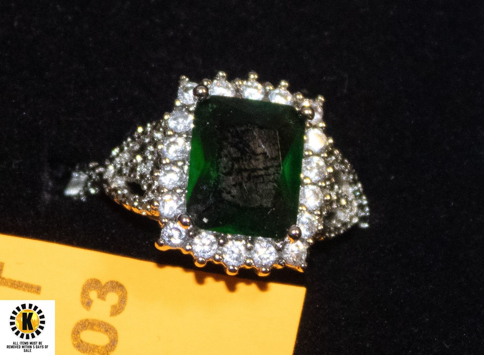 SIZE 9 LADIES GREEN GEMSTONE RING
