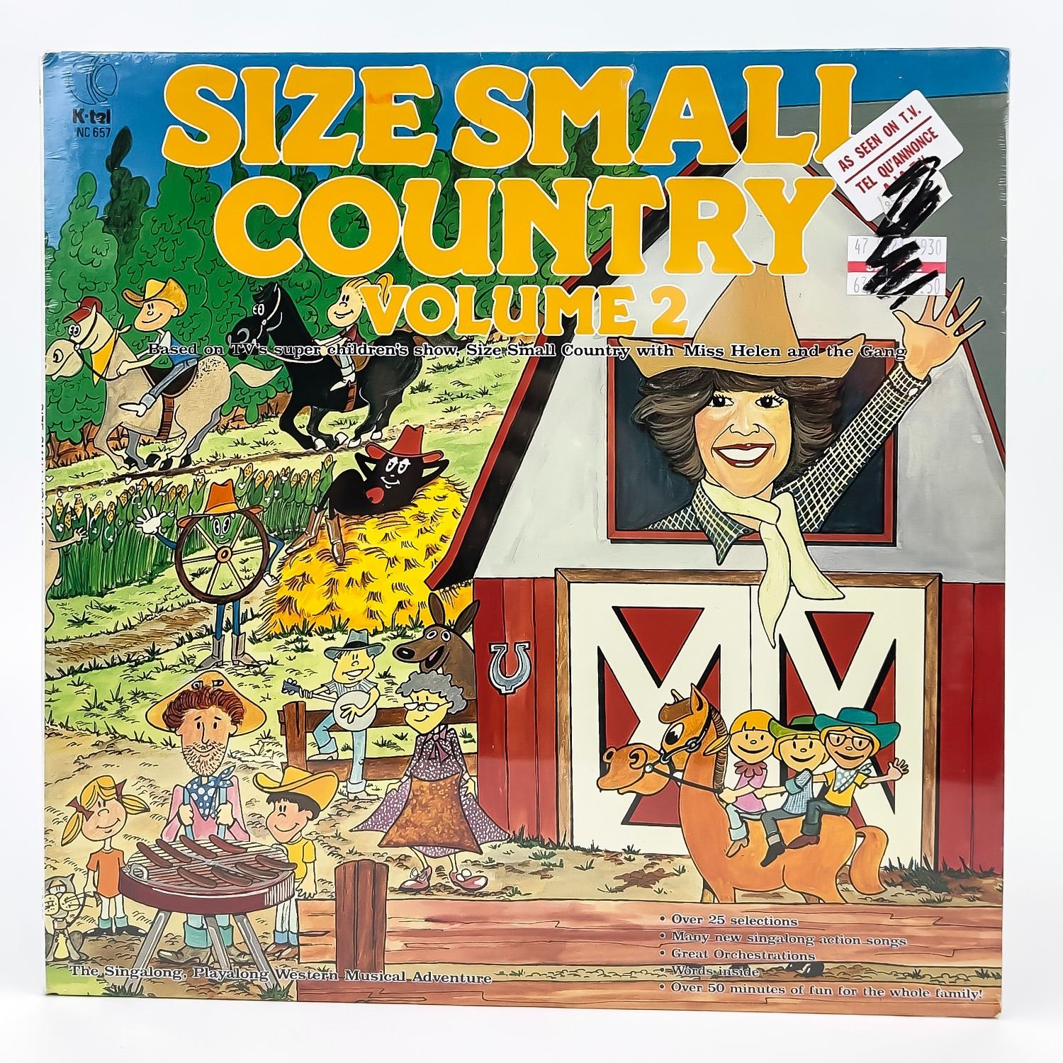 #9158 - VINYL LP GATEFOLD RECORD ALBUM. SIZE SMALL COUNTRY VOLUME 2 - BASED ON TV’S SUPER CHILDREN’S SHOW, SIZE SMALL COUNTRY WITH MISS HELEN AND THE GANG. THE SINGALONG, PLAYALONG WESTERN MUSICAL ADVENTURE. CHILDREN’S 1984 , CANADA. K-TEL RECORDS NC 657.