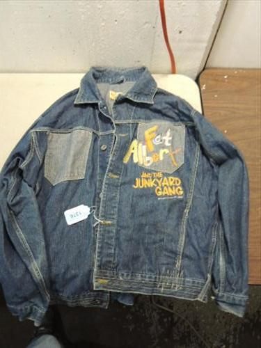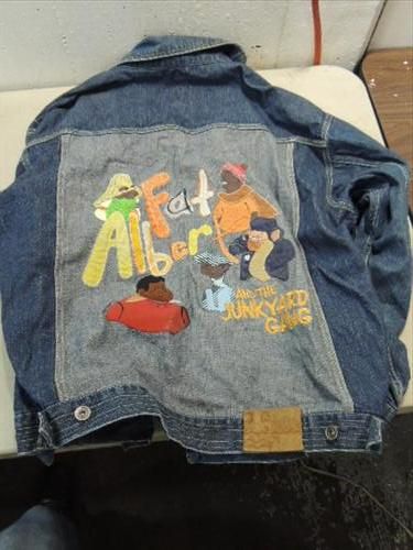 SIZE XL DENIM FAT ALBERT JUNK YARD GANG COAT: STITCHING ON FRONT BACK OF COAT. AS SHOWN. VIEW PICTURE FOR DETAIL.