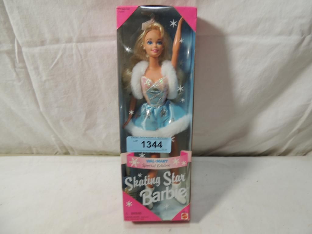 SKATING STAR BARBIE DOLL WALMART SPECIAL EDITION IN ORGINAL BOX. GOOD CONDITION. HIGHLY COLLECTIBLE. BARBIE DOLL. AS SHOWN SEE PHOTO FOR MORE DETAILS.