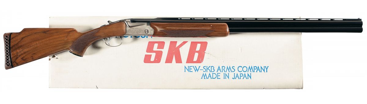 White bead front and steel mid bead sight, threaded for choke tubes with improved modified/full installed and 2 3/4 inch chambers with ejectors. The receiver has a floral scroll pattern on the sides and bottom with "TRAP" on the trigger guard. Mounted on a multi-point checkered walnut forearm with finger grooves and a pistol grip stock with raised comb, plastic grip cap and factory recoil pad. Length of pull is 14 1/4 inches. With box numbered to gun.