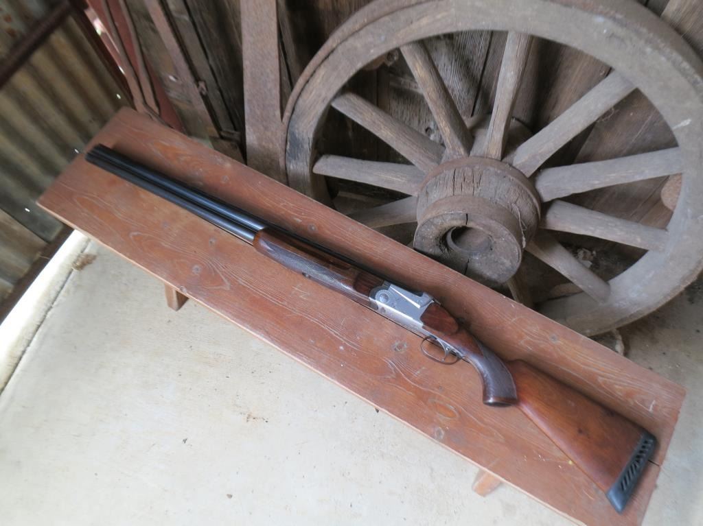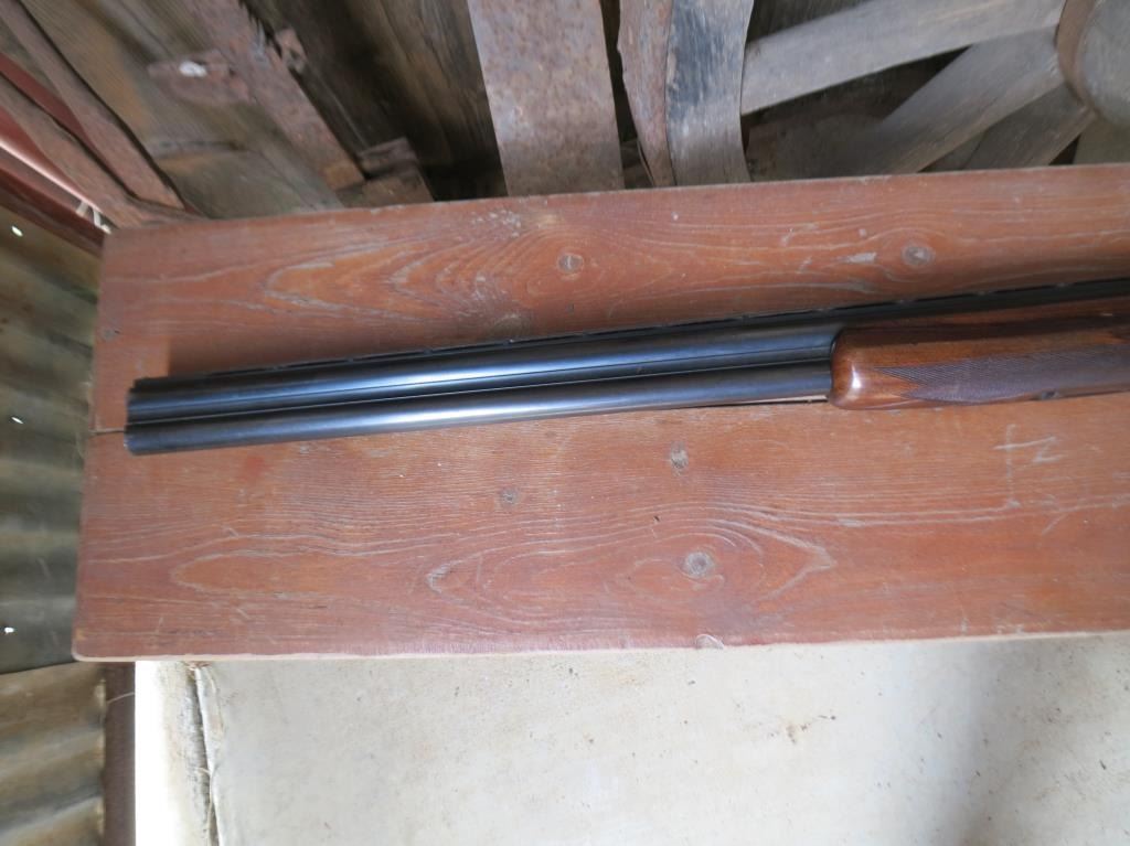 with 28" vent rib barrels, checkered walnut stocks. Trap style recoil pad. Single selective trigger, auto ejectors. Satin nickel frame, engraved. 95% blue, good stock finish, fine bores.
