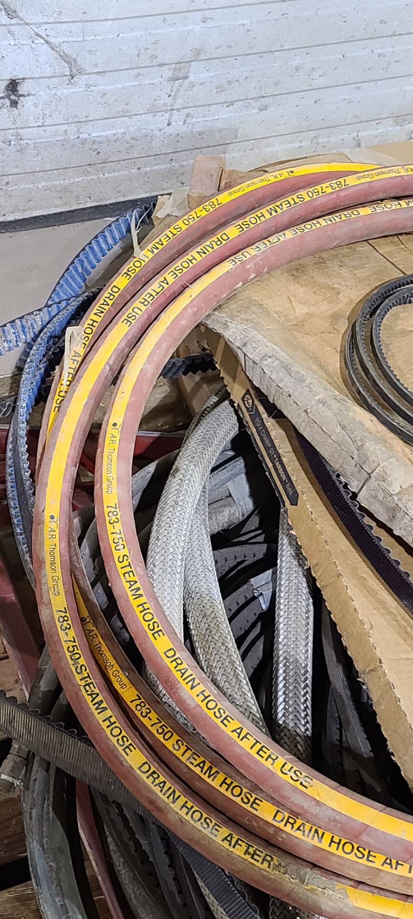 SKID OF ASSORTED STEAM HOSE, BELTS AND MISC LOCATED IN FORT MCMURRAY