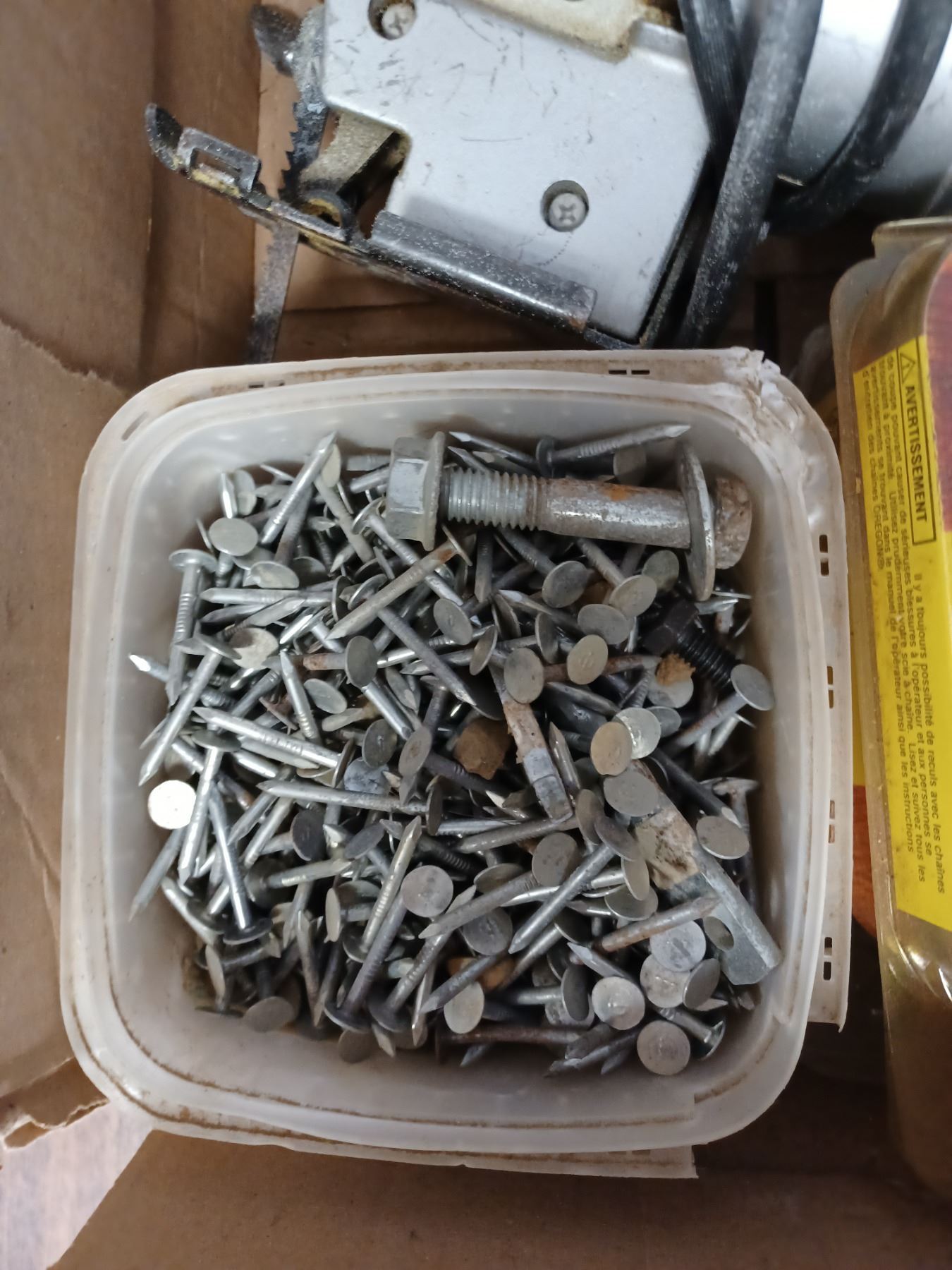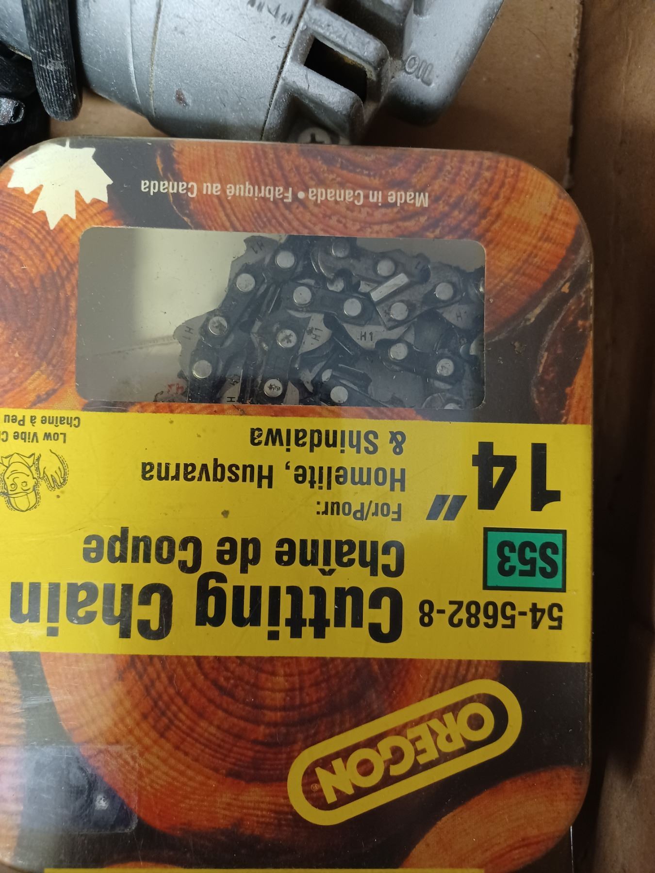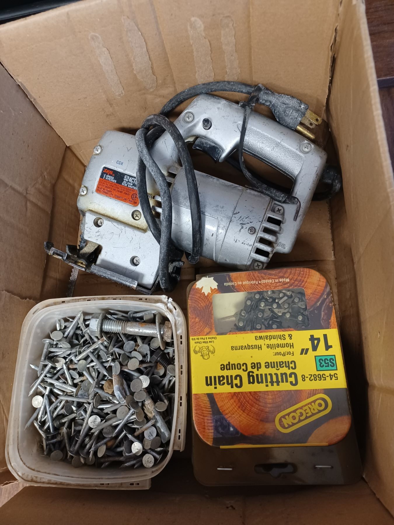 SKILL JIGSAW 3-14" OREGON CUTTING CHAINS (NEW) AND CONTAINER OF ROOFING NAILS