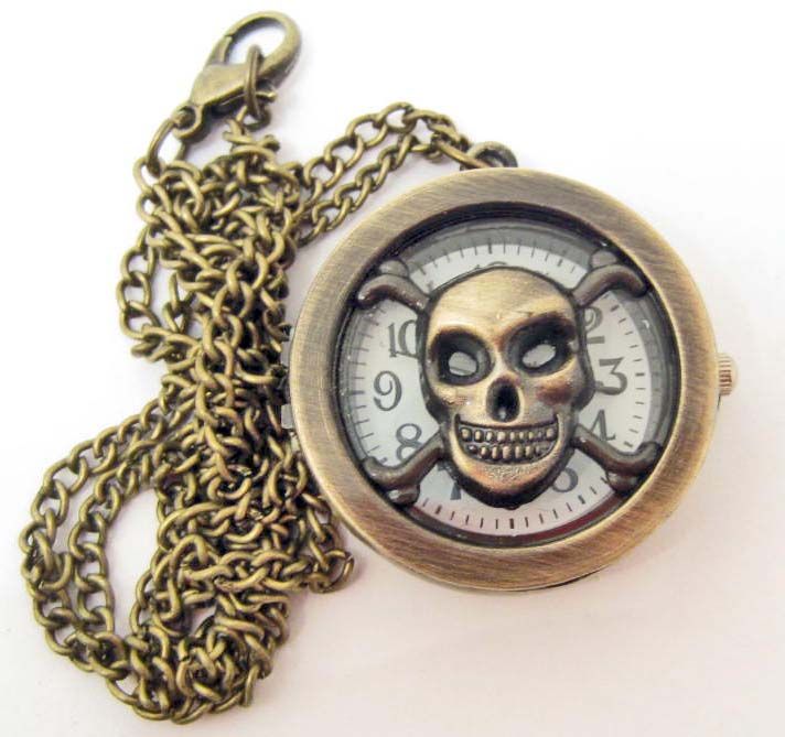 SKULL & CROSSBONES POCKET WATCH WITH CHAIN