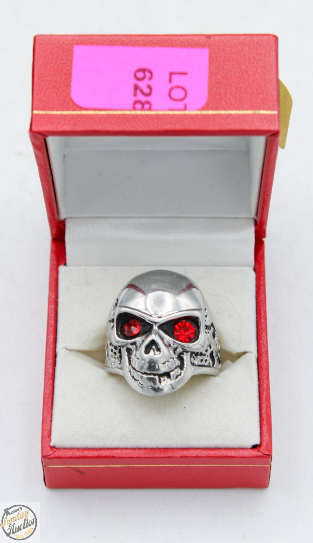 SKULL FACE RING WITH RED EYES - SIZE 12