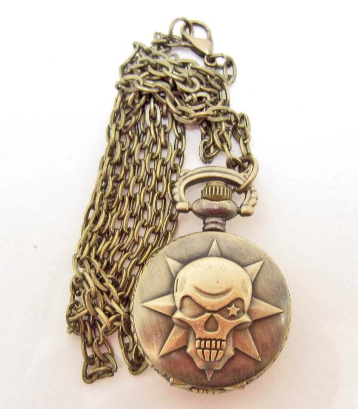 SKULL STAR FACE ORNATE POCKET NECKLACE WATCH