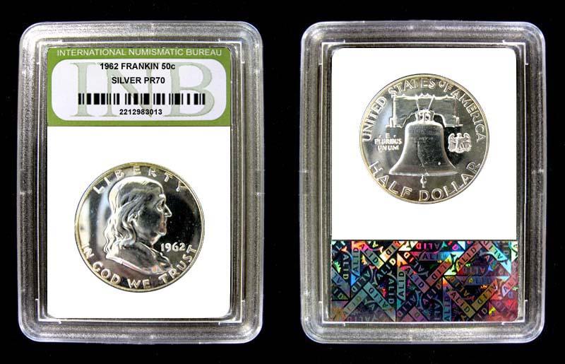 SLABBED 1962-P SILVER PROOF FRANKLIN HALF DOLLAR. INB CERTIFIED HIGH GRADE. - You may not receive the exact coin shown, but you will receive one of the same or better quality.