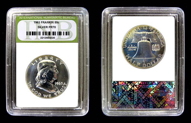 SLABBED 1963-P SILVER PROOF FRANKLIN HALF DOLLAR. INB CERTIFIED HIGH GRADE. - You may not receive the exact coin shown, but you will receive one of the same or better quality.