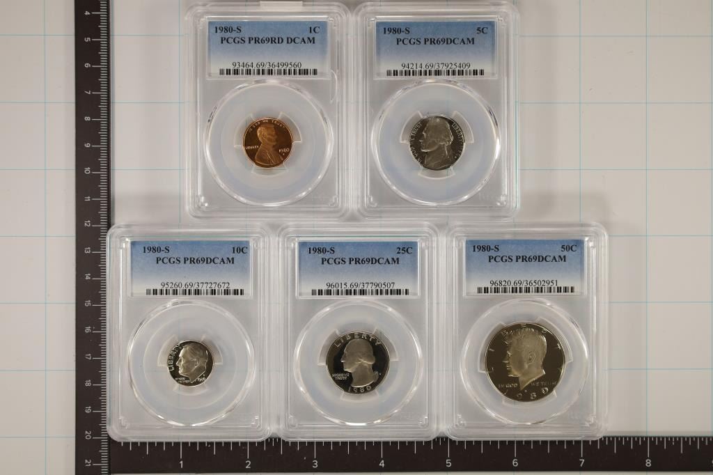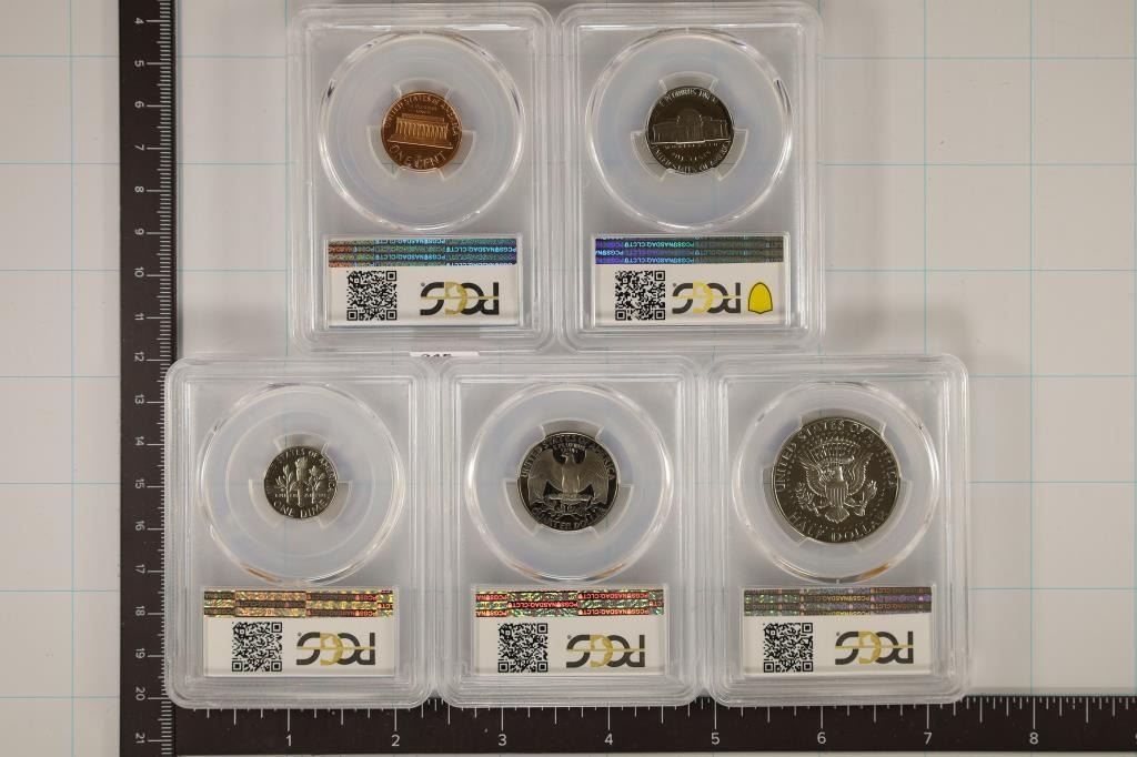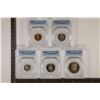 LINCOLN CENT(RED), JEFFERSON NICKEL, ROOSEVELT DIME, WASHINGTON QUARTER & JFK HALF DOLLAR.