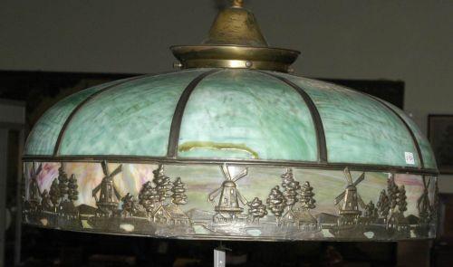 SLAG GLASS HANGING DOME 23" diameter, 4" repair to one panel, circa 1910, SHIPPING: See recommended third party shippers. This item can't be packed or shipped by seller.