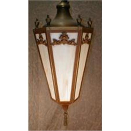 <tr><td>Title:SLAG Glass LAMP Lantern ANTIQUE Ceiling FIXTURE</td></tr>