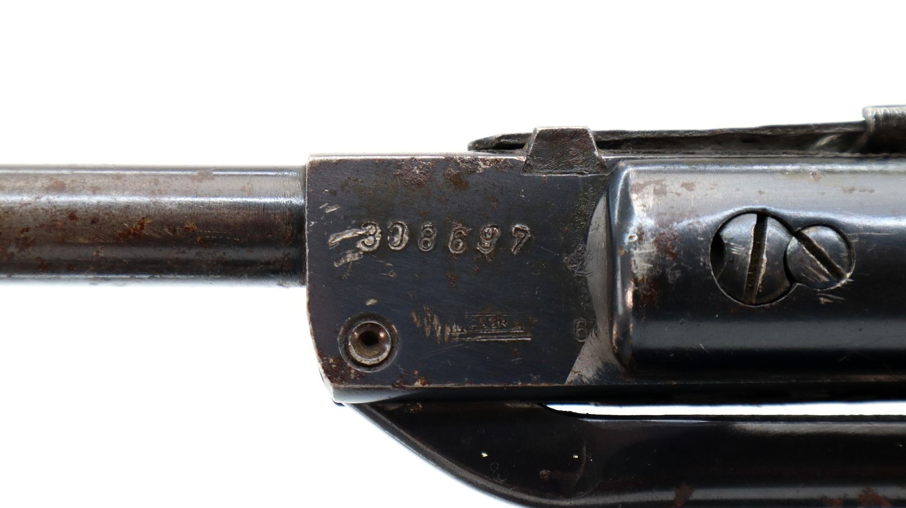 Wear: Metal finish shows some light pitting, rust speckles, scratches, handling marks and wear. Stock shows some marks, scratches and wear.