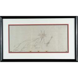 SLEEPING BEAUTY DRAWING OF “MALEFICENT.” An original production drawing of Maleficent from Walt Disney’s 1959 production of Sleeping Beauty, signed by Marc Davis. Retains punch holes, sequence number 3. SIZE: Image size: 25” w. x 11 1/2” h. CONDITION: Light vertical crease, otherwise very good condition. PF 1-3422 (1,000-2,000)