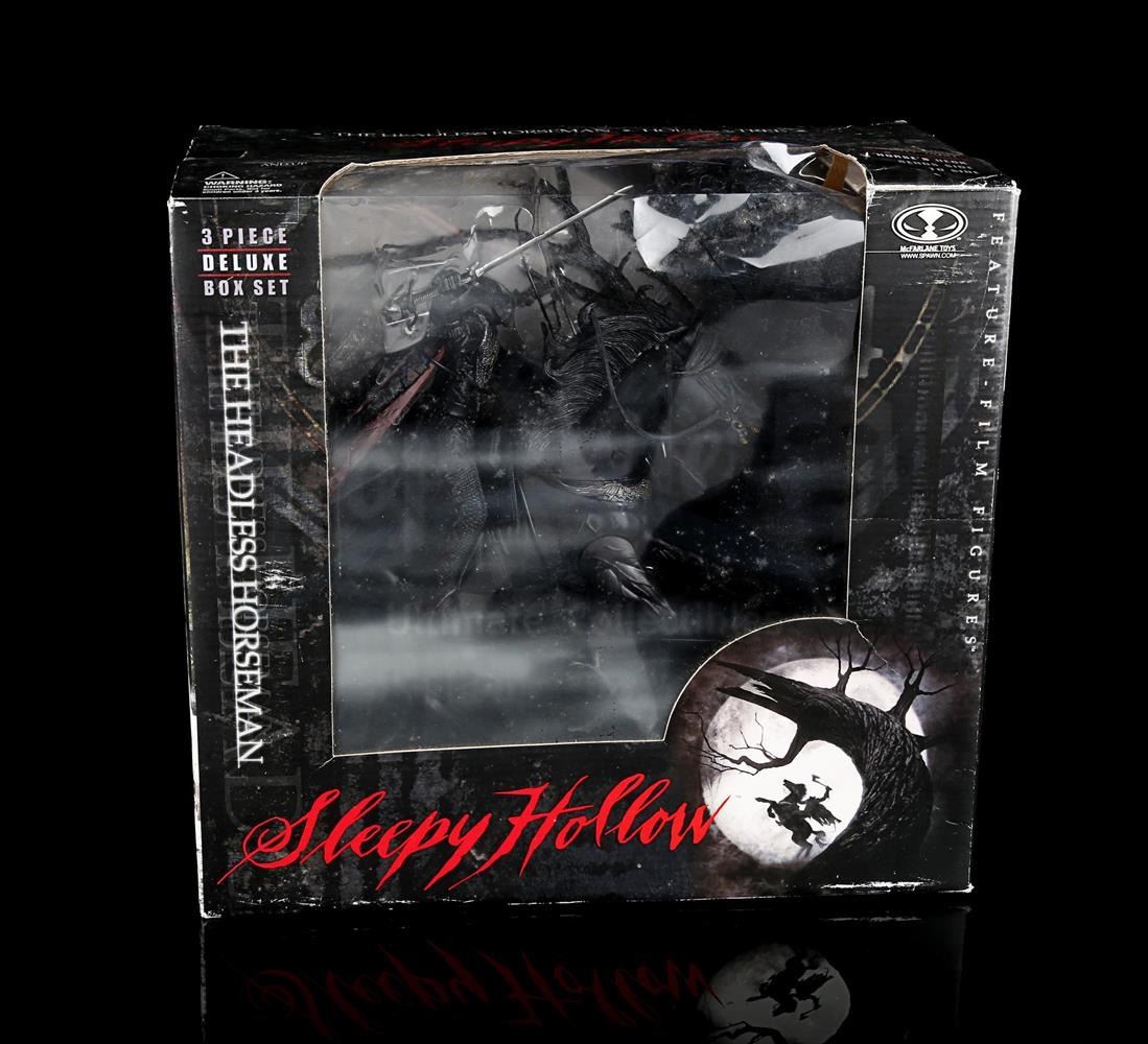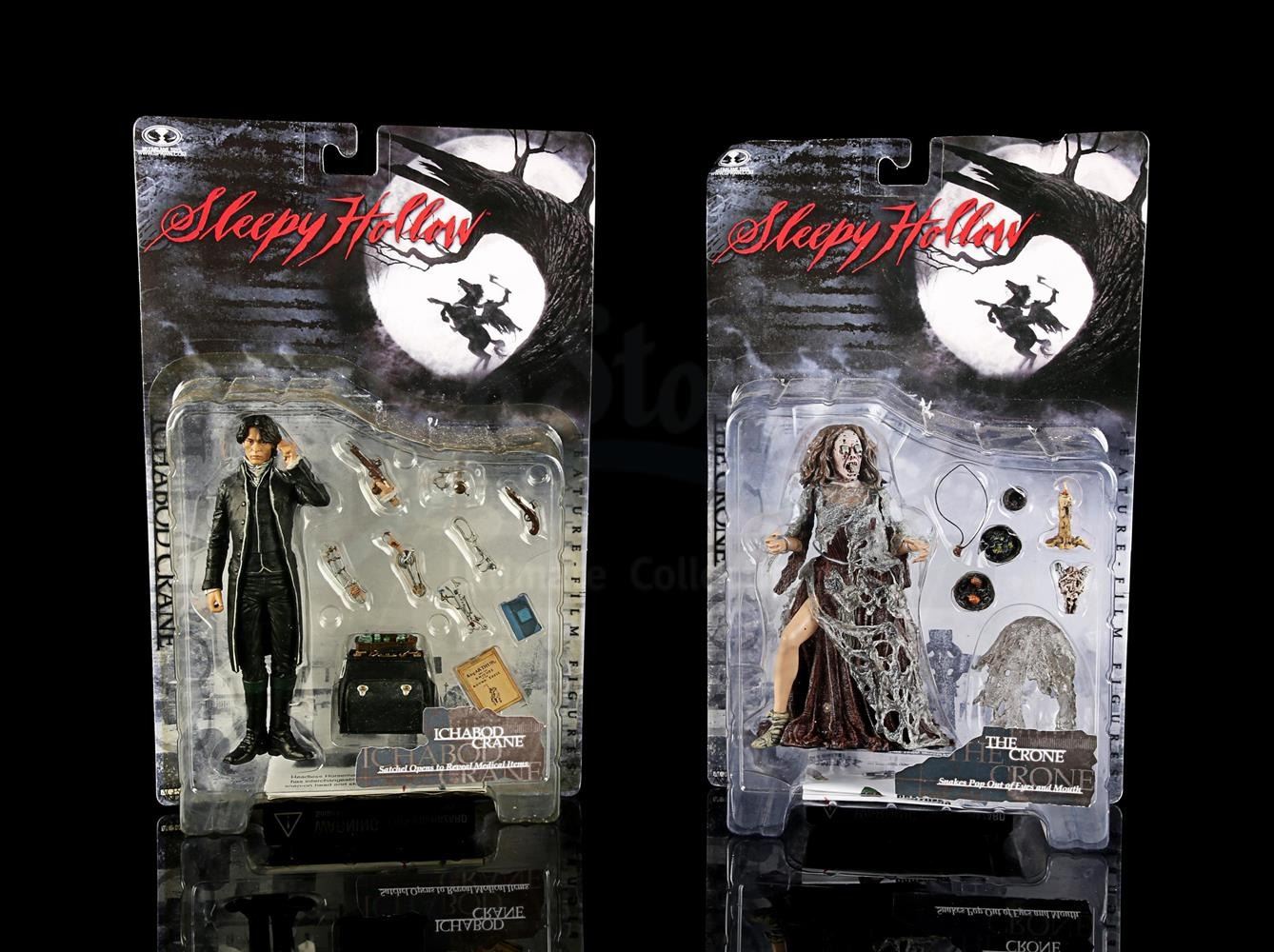 Set of four packaged figures including Ichabod Crane, The Headless Horseman, The Crone and The Headless Horseman deluxe set. Three are punched cardbacks. All complete with accessories. Bubble has yellowed on Headless Horseman.