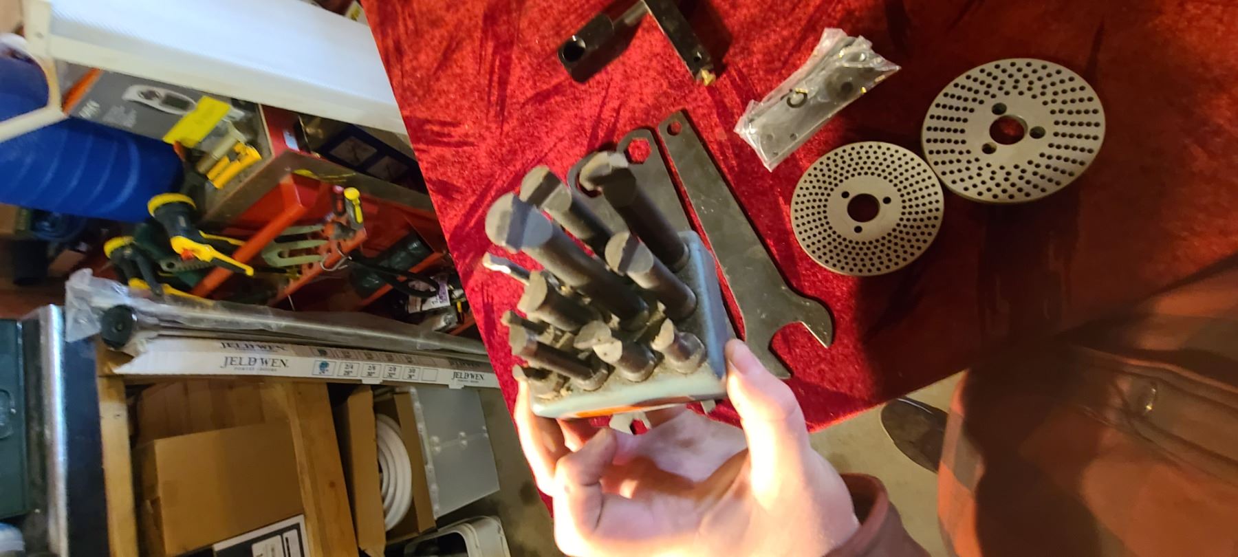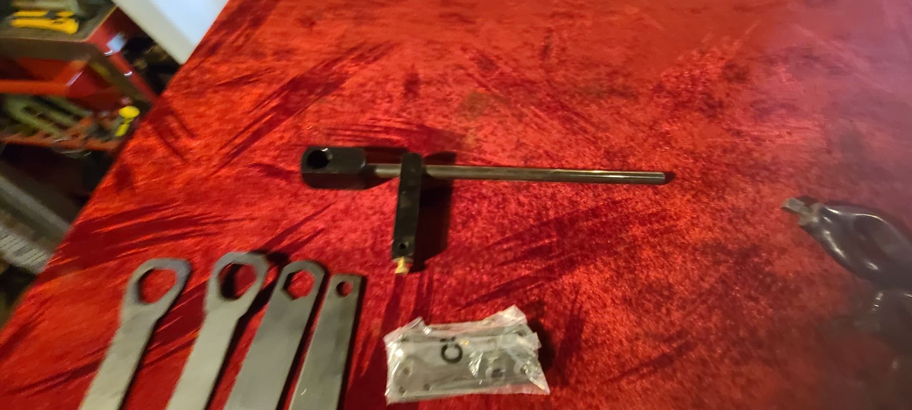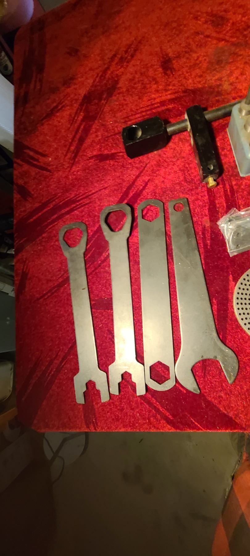 SLITTING SAW, FOUR DOG BONES, BORING BARS, TRAPANING TOOL, AND LATHE WRENCHES