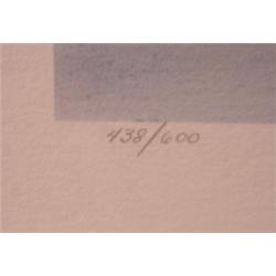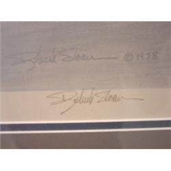 SLOAN, RICHARD FALCON PRINT. Depicts falcon resting on beach wood. Signed in lower right. Numbered in lower left 438/600. 31.5" x 29" framed & matted.