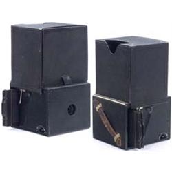 Ungewöhnliche Reflex-Box 4 x 5", zusammengeklappt wird der Lichtschacht zum Kamerakoffer. Unusual SLR box camera. When folded, viewing hood becomes a carrying case". - (Literature: McKeown, Priceguide 2001/2002, p. 652) - (2/2) - € 275/350 - (72/12)