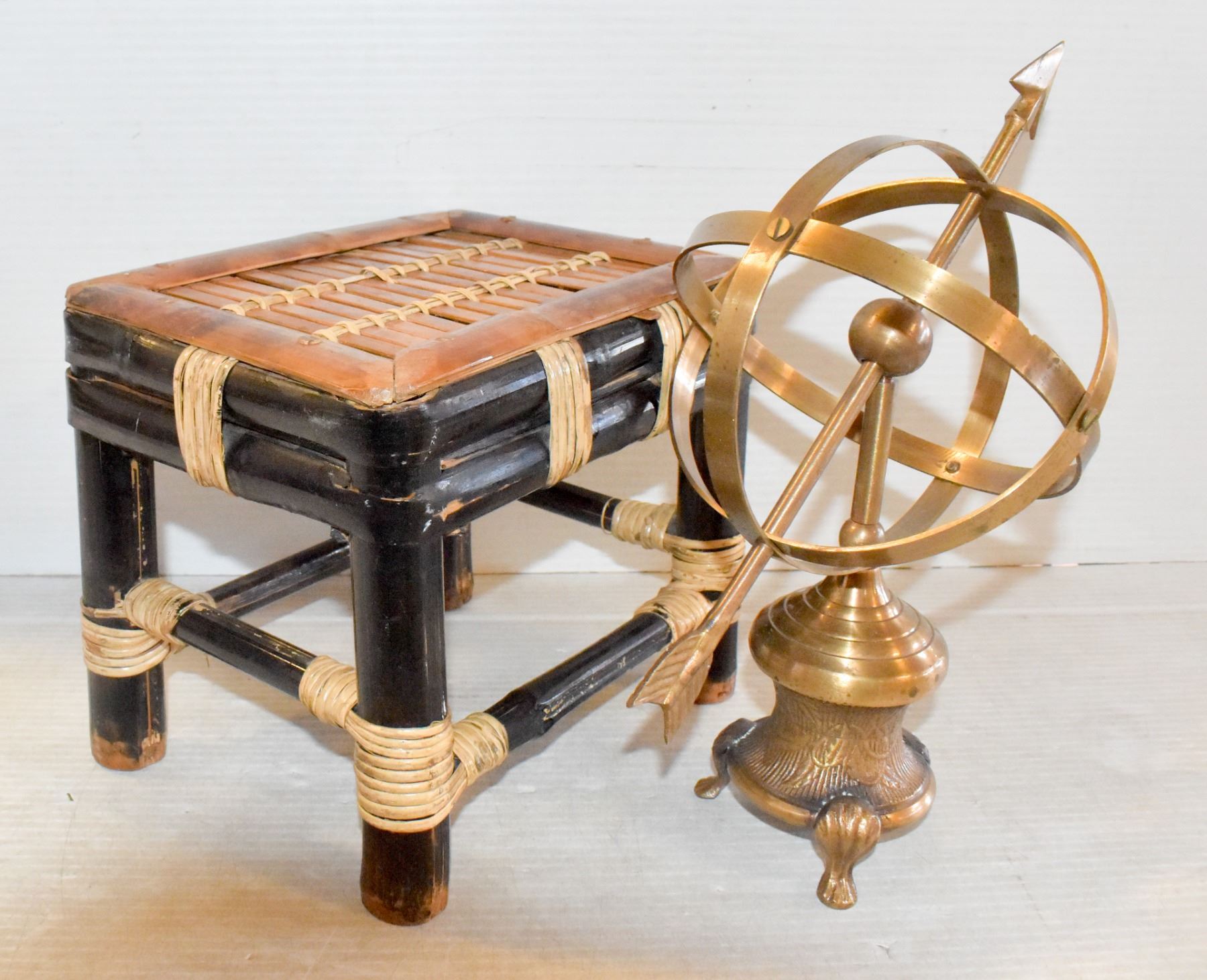 SMALL BAMBOO STOOL WITH SOLID BRASS SCULPTURE