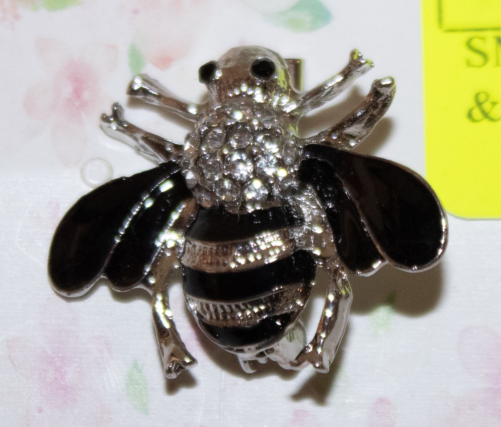 SMALL BEE BROOCH SILVERTONED & BLACK ENAMEL