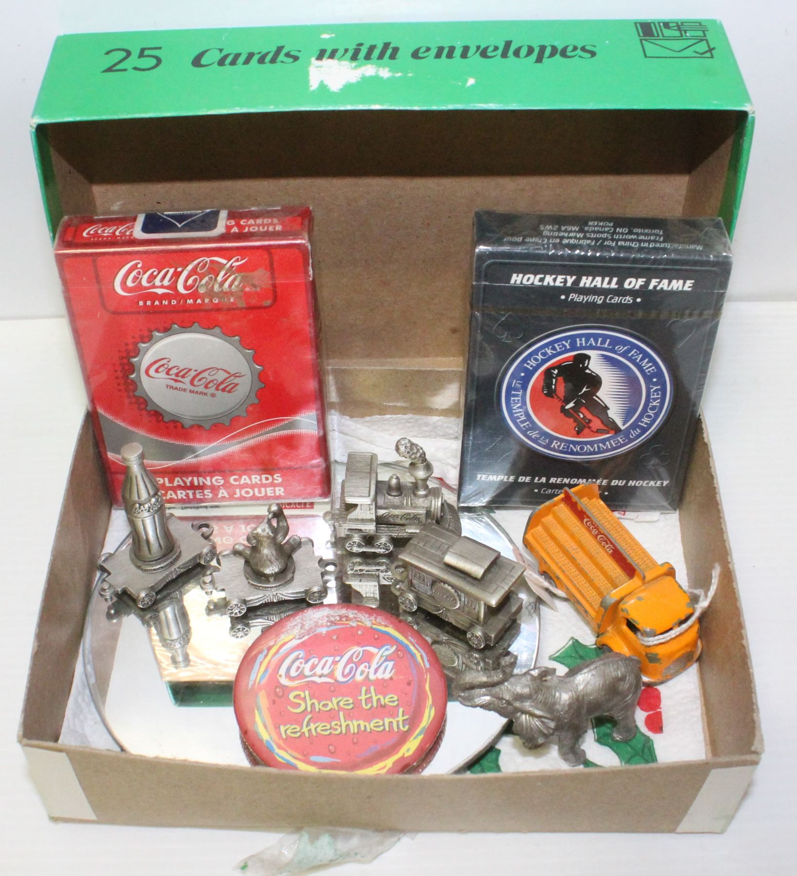 2 PLAYING CARDS, SMALL TRAINS, MIRROR