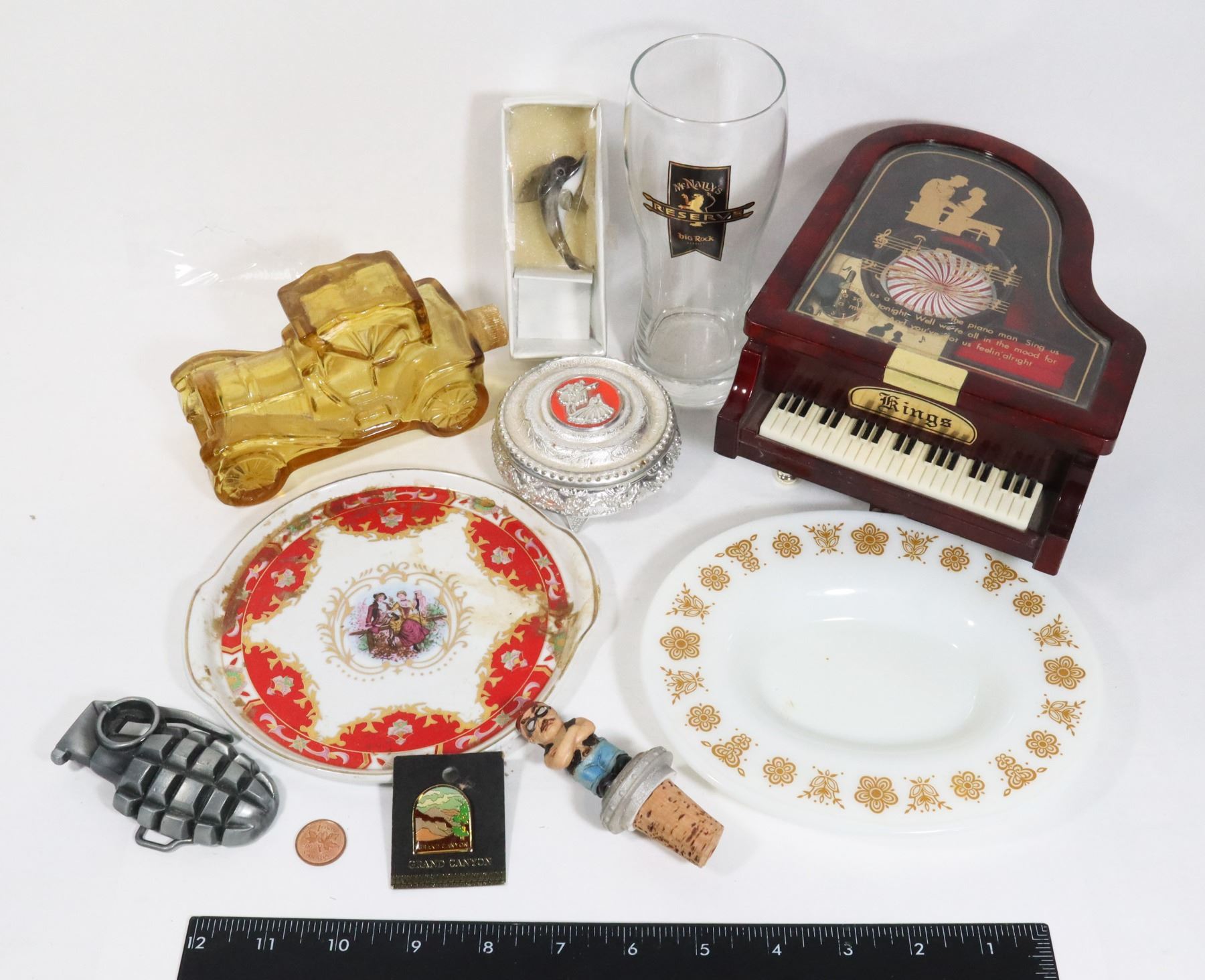 NOVELTY WINE BOTTLE STOPPER, MUSIC BOX (FOR REPAIR), AND MORE