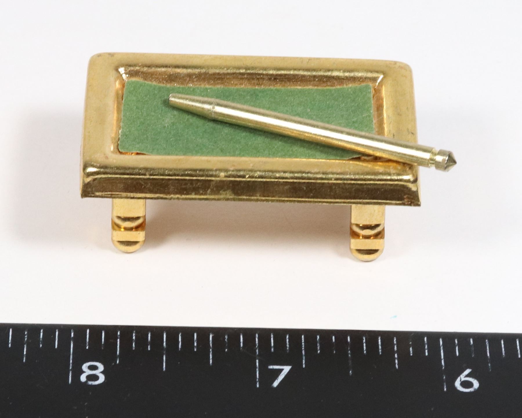 SMALL BRASS POOL TABLE AND 1 POOL CUE