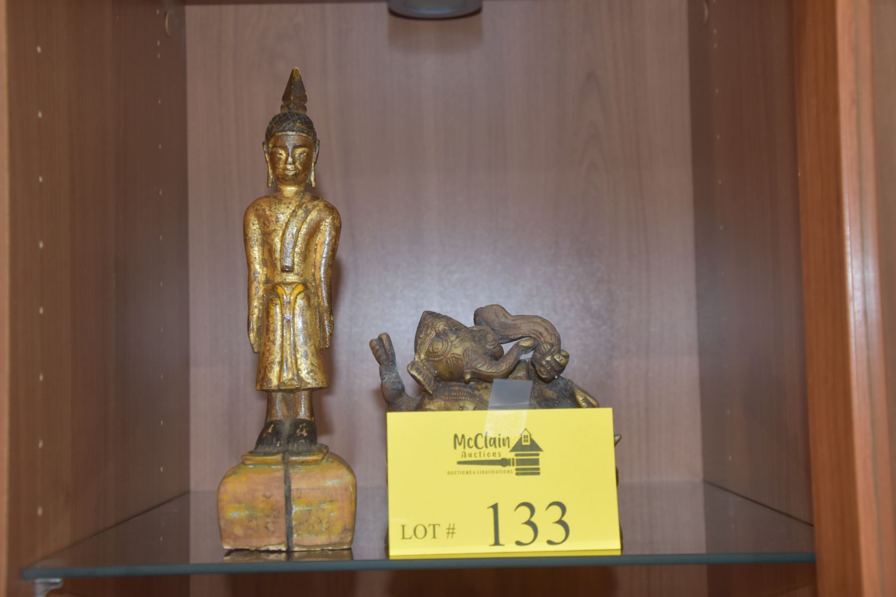 SMALL BURMESE STANDING BUDDHA & GANESHA STATUE (2 PCS)