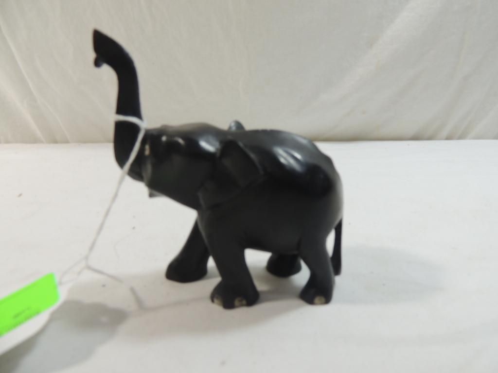 SMALL BLACK WOODEN ELEPANT. CARVED ELEPHANT. TRUNK UP. AS SHOWN SEE PHOTO FOR MORE DETAILS.