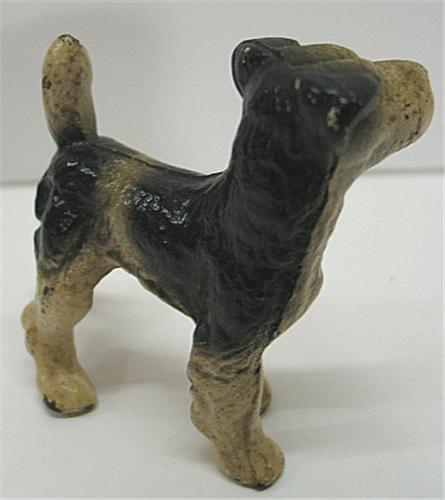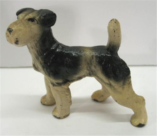 SMALL CAST IRON SCHNAUZER FIGURINE. Original painted. Some loss to paint. 3” H