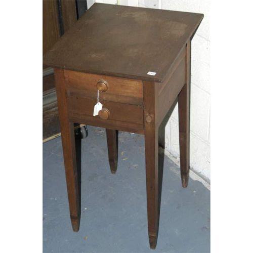 SMALL COUNTRY WORK TABLE, with two drawers, 19th century, CONDITION REPORT: repairs, lacking stretcher, stains.