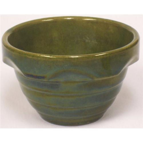 THIS IS THE CUTEST SMALL GREEN CROCK BOWL.IT IS AN OLIVE GREEN COLOR. IT HAS NO CHIPS OR CRACKS BUT DOES HAVE SOME CRAZING ON THE INSIDE OF THE BOWL.DO NOT KNOW THE MAKER BUT I WOULD SAY EITHER HULL, MCCOY OR ROSEVILLE. YOU POTTERY BOWL COLLECTOR'S CHECK THIS OUT!!!