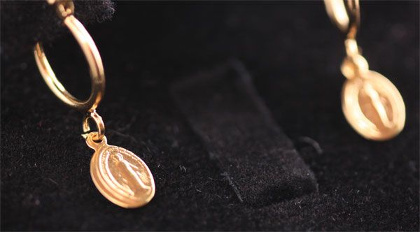 SMALL DANGLING EARRING WITH VIRGIN MARY 14K GOLD PLATED **|**|** SMALL DANGLING EARRING WITH VIRGIN MARY 14K GOLD PLATED; METAL BRASS; BRAZILIAN JEWELRY; 14K GOLD PLATED ; MSRP: $0